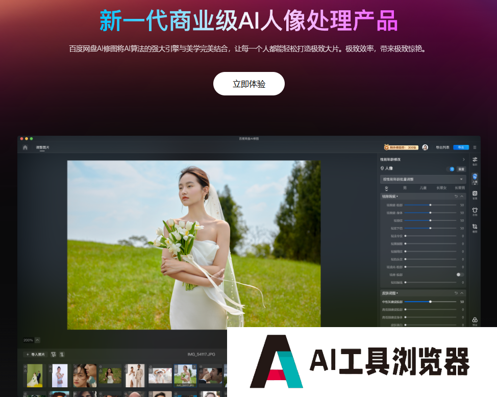 百度网盘AI修图是一个集成了人工智能算法的修图工具,由百度网盘提供。它利用AI技术的强大引擎与美学的结合,使得用户能够轻松地对照片进行专业级别的美化处理,打造出极致的大片效果。